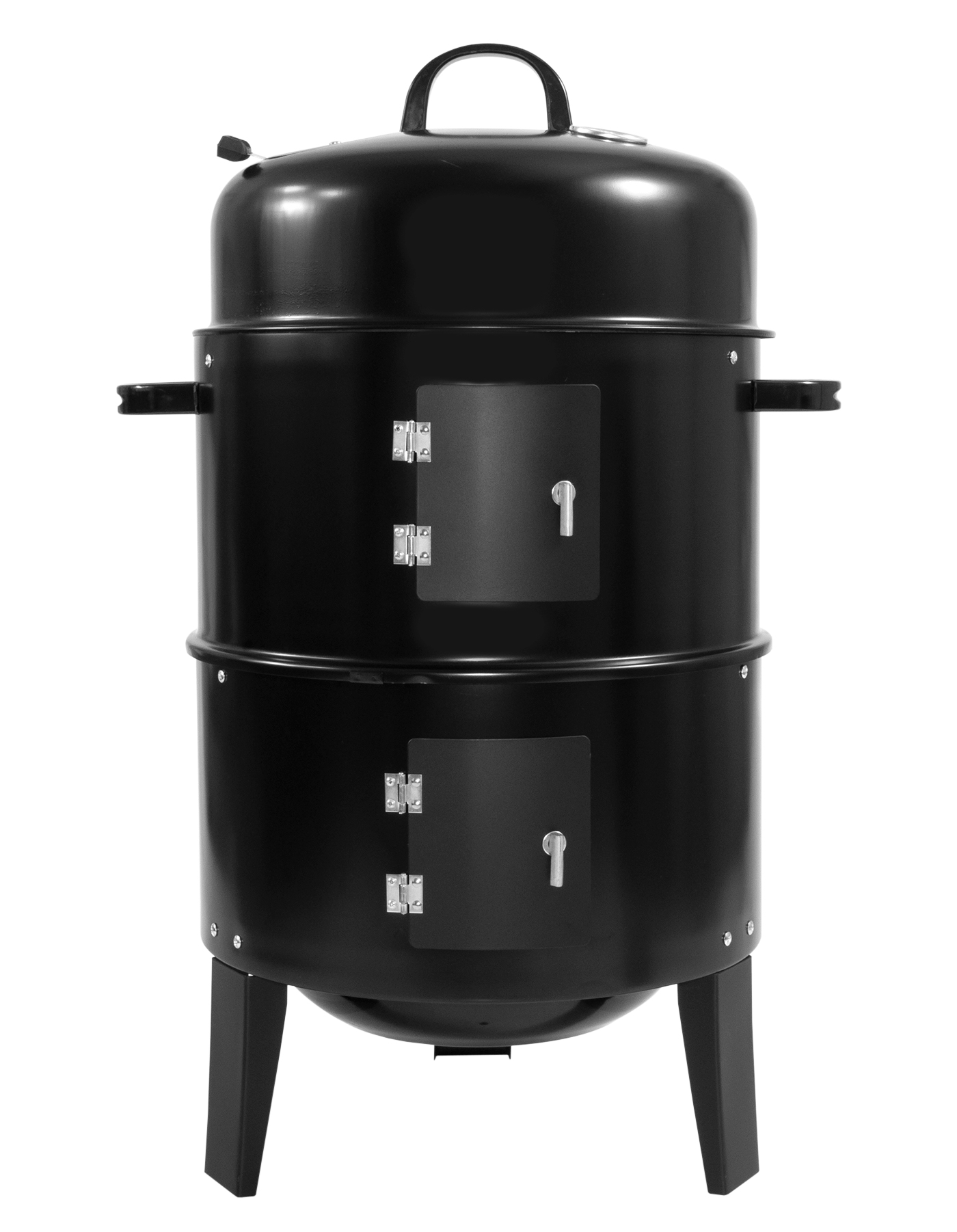 Двоє дверей полегшують доступ до внутрішньої частини коптильні, дозволяючи додавати вугілля, регулювати вогонь або перевіряти їжу.